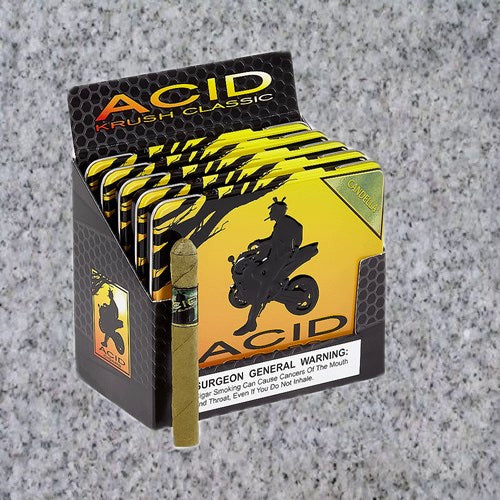 Acid Krush Green Candela Cigarillos are petite cigars handcrafted with rich-tasting broadleaf wrappers that surround the finest longfiller Nicaraguan tobaccos infused with essential oils, herbs and botanicals. Affordably presented in tins of 10 cigars or packs of 50, it's a great way to try the ACID cigars experience.