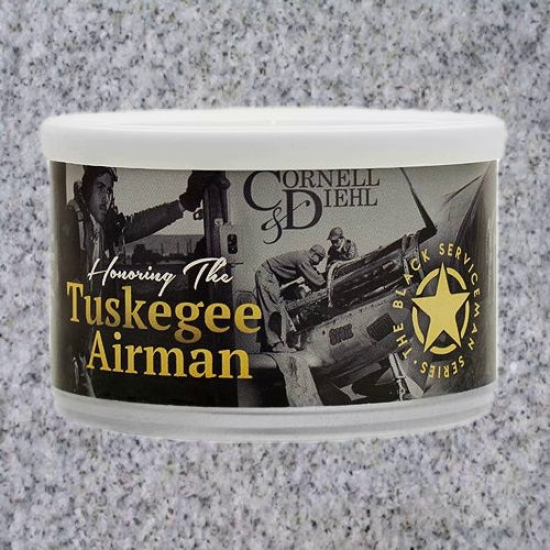 Cornell & Diehl salutes America's first Black military aviators: the Tuskegee Airman. The vibrant colors of their P-51's and their heroism earned them the nickname "Red Tail Angels" from the bomber crews they escorted into battle. A blend of Virginias, Perique, Turkish, and Latakia, pressed to marry flavors, then sliced for easy packing.