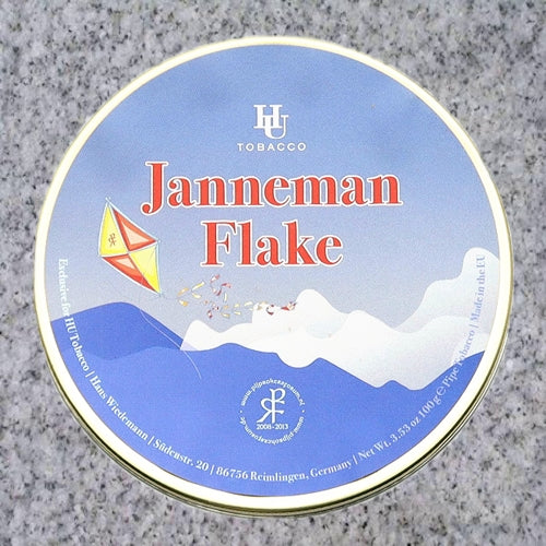 Part of HU Tobacco's HU X Community line, the Janneman Flake blend features Fire-Cured Virginas and a pinch of Perique. It's dark-pressed and cut into flake.