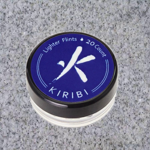 Kiribi lighter flints are soft and are priced to be the least expensive option on the market. Fitting to the Kiribi style of unique presentation, even their flints are offered in a manner different from the usual plastic pack or finicky rotating dispenser: a tiny glass bottle with a cork stopper.