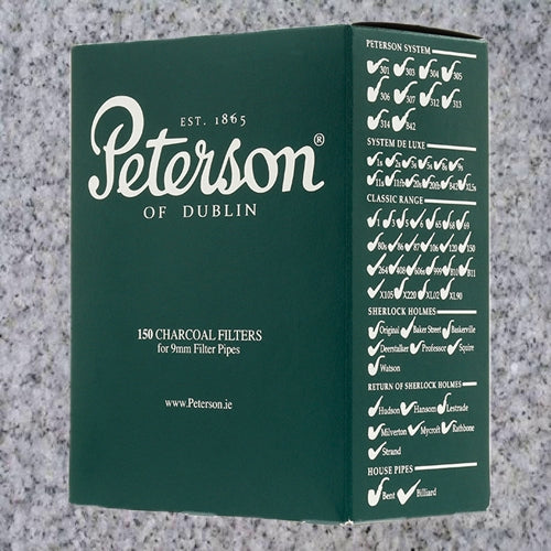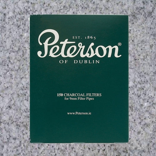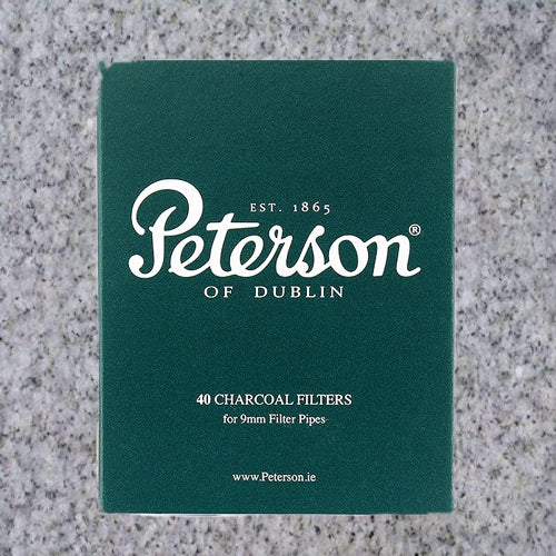 To pair with their 9mm pipes, most notably the Dublin Filter series, Peterson offers branded charcoal filters. They fit easily into any accommodatingly drilled tenon, and it's recommended they be changed every three to four smokes. Available in 40ct boxes.