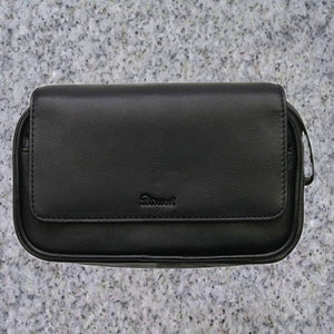 Petersons 2 pipe leather combination tobacco bag has enough room for two pipes, a zip compartment for pipe tool etc, and a rubber linedcompartment for approx. 2 oz (57 g.) of tobacco.